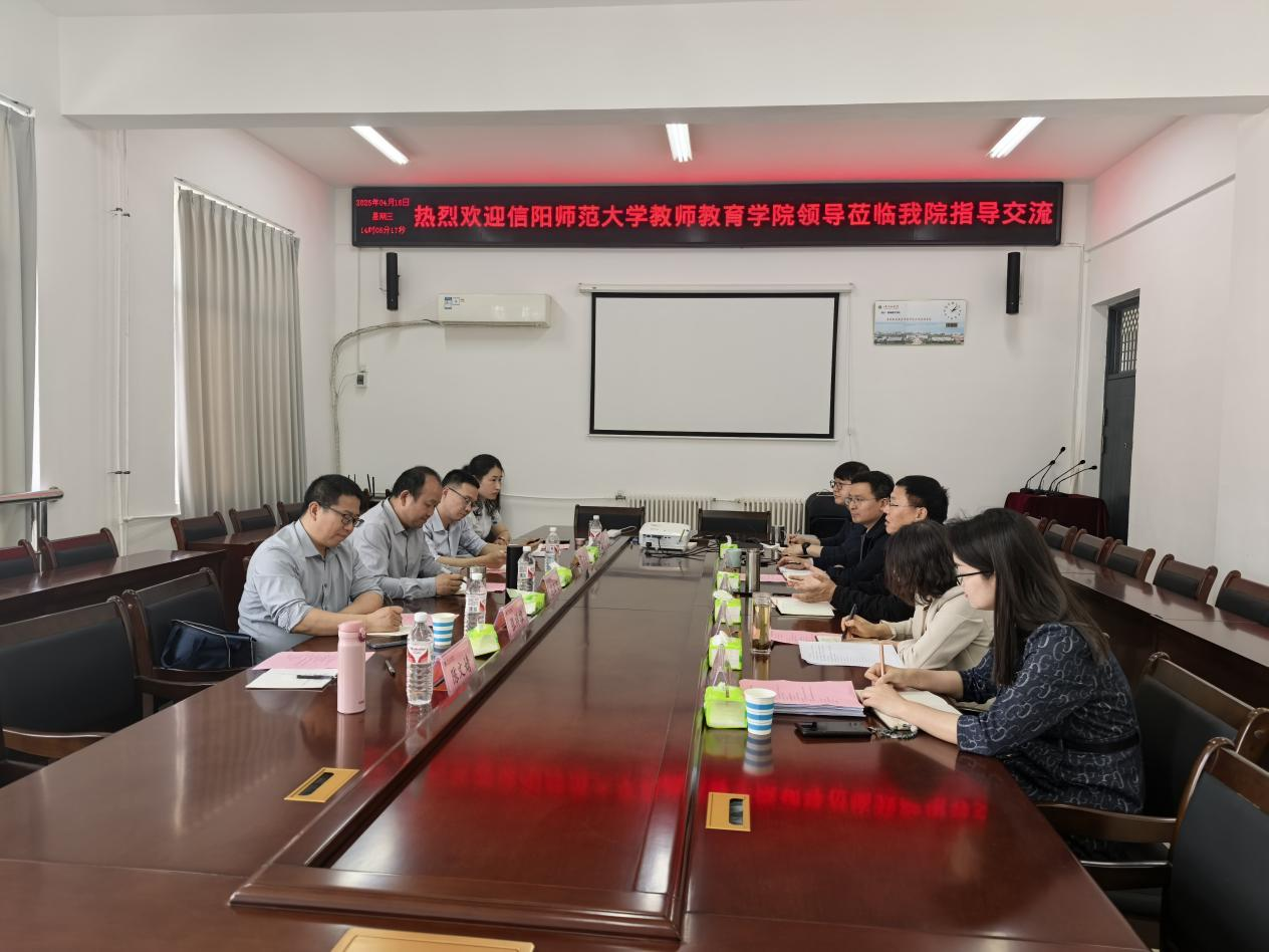 为推进小学教育专业师范专业认证准备工作,提升师范教育人才培养质量,4月16日,教师教育学院副院长连亚飞、院长助理兼教学秘书赵国龙、办公室主任殷瑛、实践教学中心主任张祥耀和思政与就业指导教研室副主任陈文婧一行5人赴平顶山学院开云kaiyun官方在线入口考察交流活动。双方围绕学院发展、师范专业认证、师资队伍建设等核心议题展开深入研讨,共享经验、共谋发展。