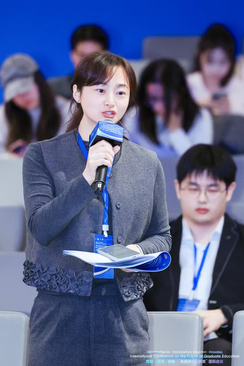 大会聚焦人工智能技术赋能、跨学科融合创新及可持续发展等核心议题,旨在构建高层次人才培养体系,全面提升自主创新人才培育质量。在全球教育深度融合、科技革命与产业变革加速推进的背景下,研究生教育正经历从规模扩张向内涵式发展的关键转型,亟需构建适应新时代需求的创新实践平台。我院王陈祯博士受邀出席大会,并在主题发言和小组讨论中作报告。她认为在百年变局加速演进的今天,高校唯有保持敏锐感知与快速响应,唯有密切跟踪与精准研判国际发展态势,积极识变应变求变,牢牢把握战略主动,方能抢占时代先机立于不败之地,引起与会者共鸣。