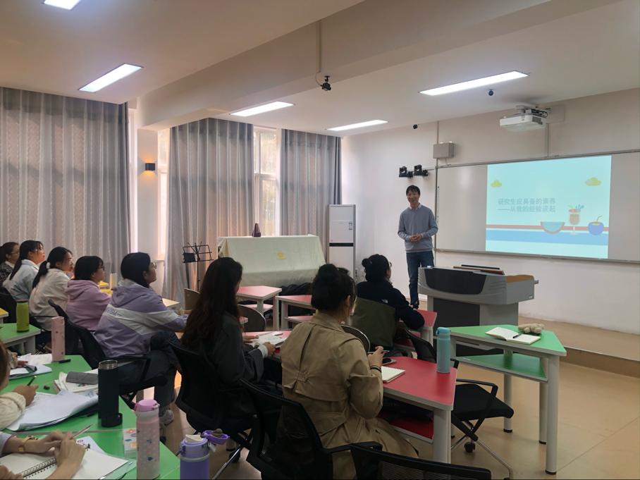 10月28日下午,应教师教育学院邀请,教育科学学院岳鹏飞博士为2021级小学教育硕士研究生做“研究生应具备的学术素养”主题报告。报告会由教师教育学院院长付永昌主持。