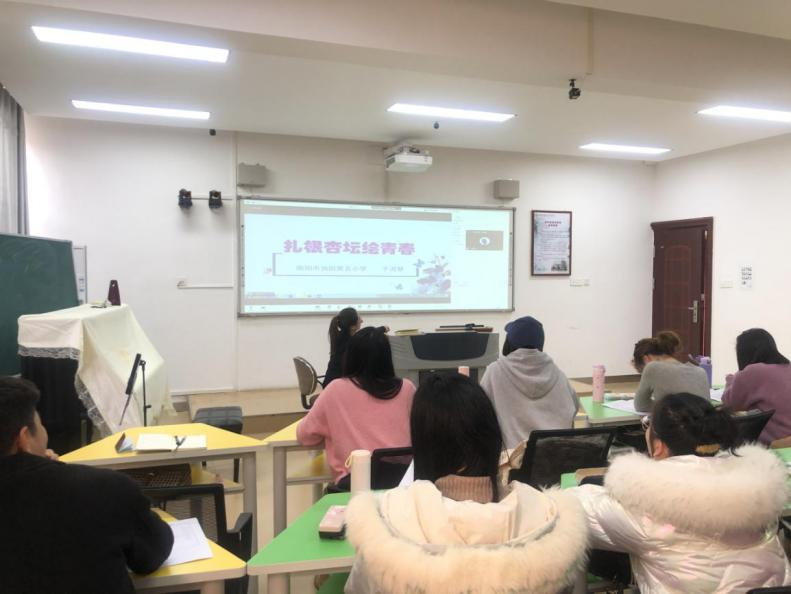 11月14日下午,应教师教育学院邀请,河南省南阳油田第五小学校长,河南省小学语文特级教师于溟慧在教七楼402以腾讯会议形式为小学教育研究生作了题为“扎根杏坛展现青春——新入职教师成熟与成长”的学术讲座。讲座由教师教育学院副院长李文田主持。