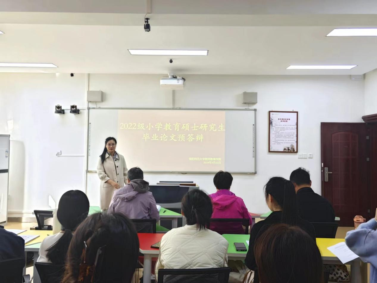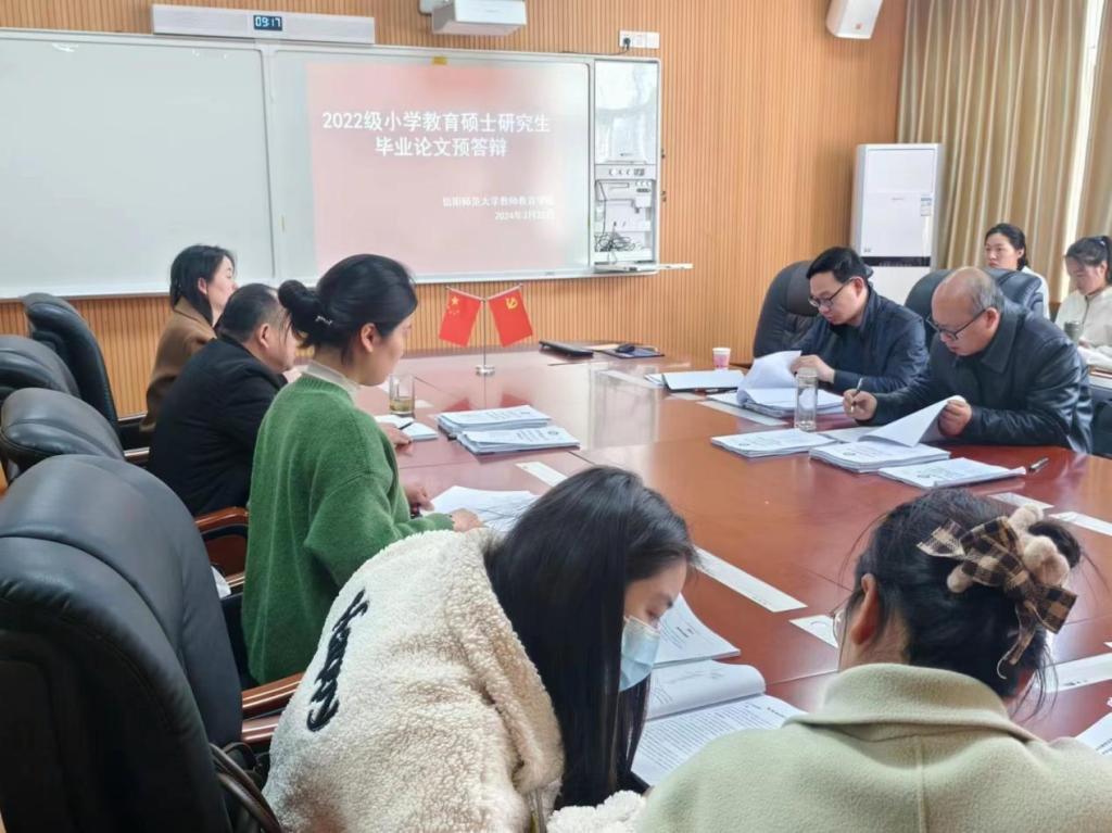 3月23日上午,教师教育学院在教七楼301、402室分别举行了2024届小学教育研究生毕业论文预答辩工作会。导师组导师李文田、连亚飞、赵国龙、方勤华、吴宏、刘建新担任答辩委员,常燕燕老师担任答辩秘书。学院2024届小学教育专业毕业研究生分两组进行预答辩,非毕业届研究生旁听了本次预答辩。