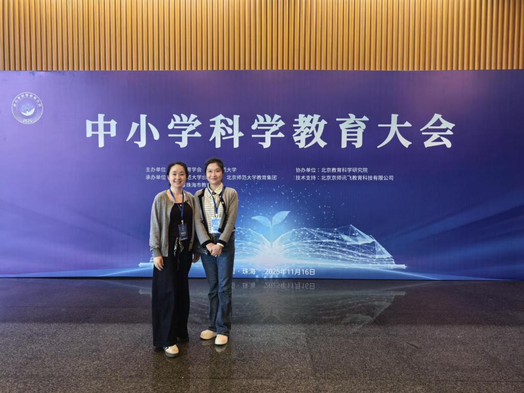 2025年11月15-16日,由中国教育学会和北京师范大学携手主办的中小学科学教育大会在广东省珠海市盛大召开。本次会议以“贯彻落实全国教育大会精神,总结交流实践经验,助力中小学科学教育深入实施”为主题,旨在为全国中小学科学教育发展搭建高规格的交流平台。来自全国科学教育领域的专家学者、有关地方教育行政部门代表、中国教育学会及各地教育科研机构代表、一线中小学校长和教师等1000余人齐聚一堂,现场参会。我院陈文婧、常燕燕老师受邀参加本次大会。