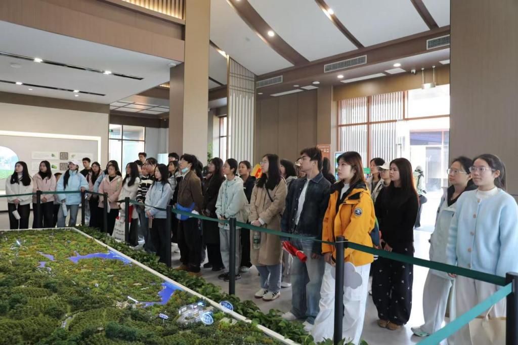 16日上午,全体师生乘车抵达文新茶村。在讲解员的引导下,大家有序参观了信阳毛尖博物馆。馆内不仅陈列有唐代茶器、近代制茶工具等珍贵实物,还通过图文并茂的展板,系统梳理了信阳毛尖的历史发展脉络。从唐代“淮南茶,光州上”的美誉,到明清时期成为贡茶,再到现代非遗制作工艺的传承与创新,同学们深入了解了信阳毛尖跨越千年的文化积淀。随后,师生们沿步道登上茶山,置身于连绵起伏的茶园之中,切身感受信阳茶乡的自然生态与人文风情。