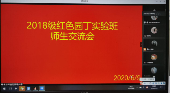 6月9日,教师教育学院2018级红色园丁实验班举行大别山精神“云交流”会,会议由红色园丁实验班班长史铭明主持