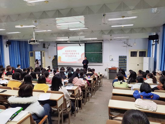 为更好地开展教育见习工作,10月15日下午,学院在社科121举办2020级教育见习动员大会,会上,张祥耀老师就本次教育见习的内容、方式、及有关要求进行了具体说明。李杨则从学生安全、见习纪律、准备工作等方面对在场学生提出要求。