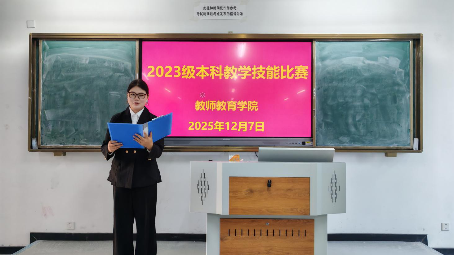 本次教学技能比赛不仅是学生展示自我、交流学习的平台,也是对学院师范生培养阶段性成果的一次集中检验。通过模拟真实教学场景,比赛有效引导了学生将教育理论与教学实践相结合,在体验教师角色、展现个人风采的同时,及时认识到自身不足,明确未来努力方向。学院将持续营造重视教学、钻研教学的良好氛围,助力师范生夯实专业基础,提升综合育人能力,为其日后投身教育事业奠定坚实基础。