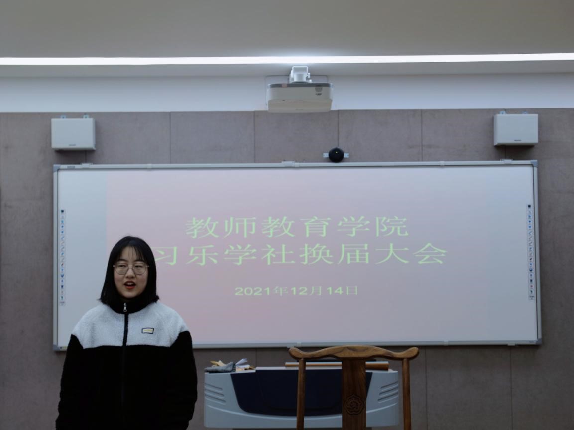 12月14日,教师教育学院习乐学社第四届换届大会在教七楼201教室顺利举行,习乐学社指导教师谭阿明参加本次会议。会议由习乐学社社长高鸽主持。