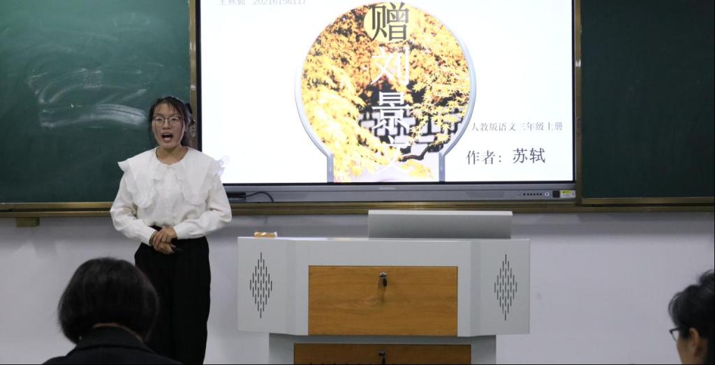 自9月份起,我院21级专科学生开始进行校内教育实习,历时三个月,经过前期小组初赛的激烈角逐,20名选手脱颖而出。各位参赛选手在老师的指导下选取小学各科课题,以现场教学的竞赛形式,展现课堂教学技能。选手们在台上展示智慧,挥洒风采。为明天在三尺讲台上辛勤耕耘,备下充足的经验。其中,2号选手王艳茹以《赠刘景文》为选题,凭借生动的对话模仿和新颖巧妙的教学方式,深深打动了评委老师和现场观众。他的教态自然得体、教学思路清晰、语言表达准确精炼,充分展现了其扎实的专业基础和良好的教学技能,赢得了现场观摩同学的阵阵掌声。评委们根据参赛选手的教学设计、课件制作、模拟上课等方面严格打分,综合评定。王燕茹等3名同学获得一等奖,陈冉等5名同学获得二等奖,刘森语等12名同学获得三等奖。