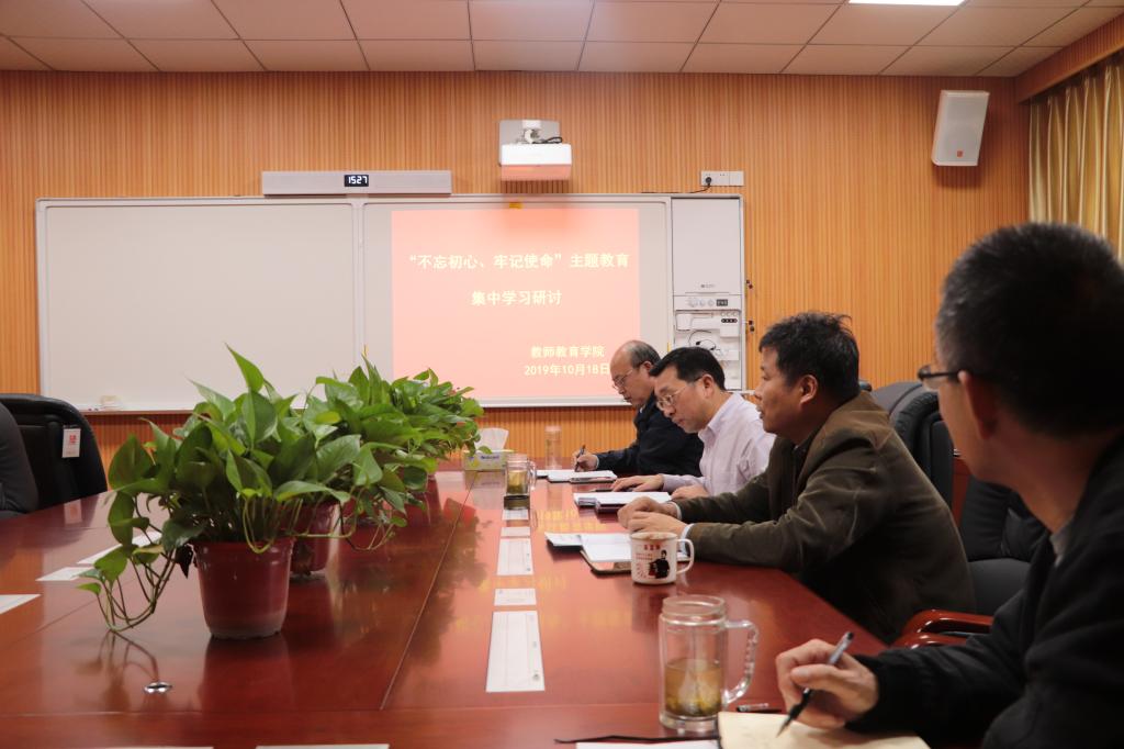 10月17日至18日,教师教育学院党委在教七楼303党员之家开展了为期两天的“不忘初心、牢记使命”主题教育第二专题集中学习研讨会。学院党委副书记潘登、副院长付永昌、党委委员李文田、教学秘书张申亚参加学习研讨会。会议由潘登主持。