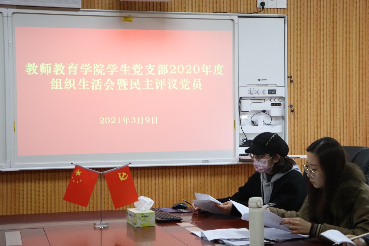 3月9日下午,教师教育学院于教七楼301会议室召开了学生党支部2020年度组织生活会暨民主评议党员会。学生党支部书记李依、党小组组长李杨、徐亚南、刘莅原,全体学生党员及预备党员参加会议。会议由李依主持。