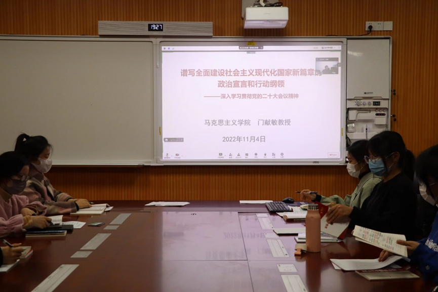 11月4日晚,教师教育学院于教七楼301会议室开展党员发展对象学习贯彻党的二十大会议精神报告会。报告由马克思主义学院门献敏教授主讲,我院第38期党员发展对象全体成员参加。