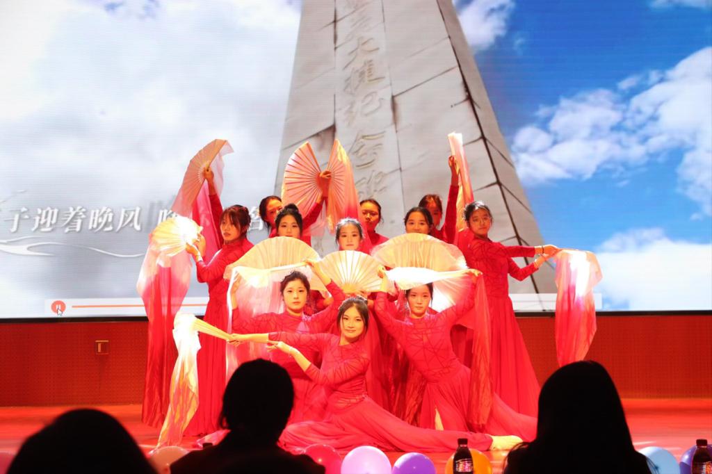 汇报课以“赤子心、民族魂、青春志”为脉络铺展三大篇章,14个节目串联起师范生的专业素养与精神风貌。开场齐舞《你要跳舞吗》瞬间点燃现场氛围,同学们灵动的舞步勾勒出自由的青春模样;吉他弹唱《故乡》、群体扇子舞《铭记》等节目,以多元形式诠释赤子情怀,其中群体说唱《山河无恙》堪称点睛之笔,将音乐与家国情怀深度结合,字字铿锵的演绎尽显莘莘学子的赤子之心;古筝伴舞《怎叹》、钢琴独奏《月光奏鸣曲》融合传统与经典,抗日情景剧《风声》更以沉浸式演绎带领观众重温峥嵘岁月,而合唱《奉献》则以深情歌声诠释了无私的民族精神,成为篇章中直击人心的精彩瞬间;《青春》展现出当代师范生的多元风采,压轴的男生合唱《像你这样的朋友》更是以温暖的和声与真挚的情感,唱出了同窗之间的羁绊,让现场掌声与喝彩声此起彼伏。
