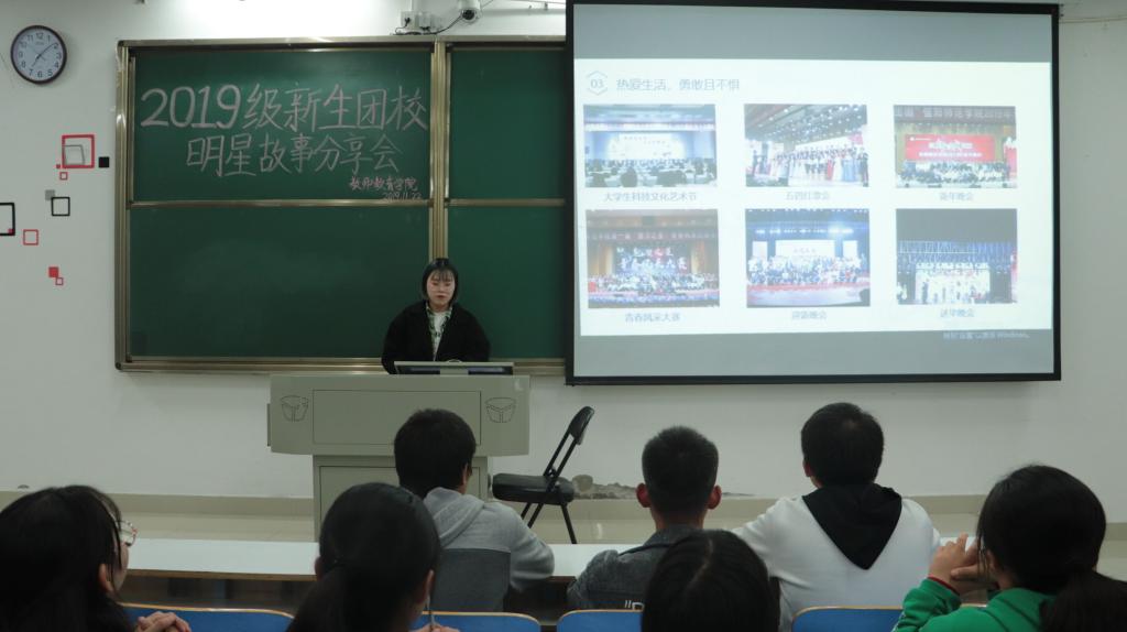 11月22日晚,教师教育学院2019级新生团课“明星故事分享会”在社科楼121教室顺利举行,教师教育学院团委副书记邵银萍主持本次新生团课。