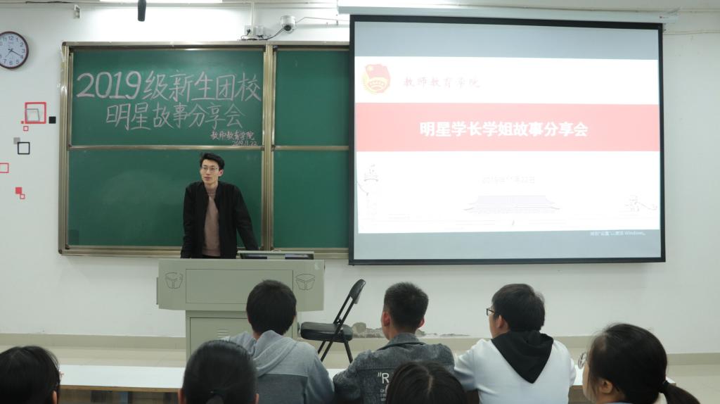 新生团课是教师教育学院加强基层团组织建设的一项重要举措,本次明星故事分享会通过对优秀学生先进事迹的挖掘和传播,引导学生学习榜样人物坚定执著、志存高远、艰苦奋斗的高贵品质,激励教师教育学院学子进一步坚定理想信念不忘初心,笃实前行。