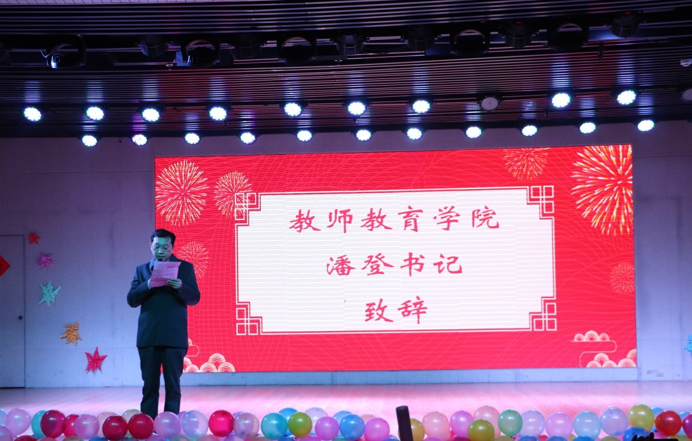 踔厉奋发展师风,砥砺前行迎新年。12月28日晚,教师教育学院2020年“青春‘师’代,锦绣时代”元旦晚会在理科楼报告厅成功举办。学院党委副书记潘登及各位老师,与教师教育学院500名学子欢聚一堂,共同观看晚会。