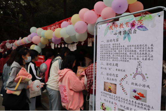 为积极响应学校号召,加强疫情后对学生的心理健康教育,缓解疫情对学生心理产生的影响,10月20日下午,由大学生心理健康教育中心主办、教师教育学院心理部承办的心理游园会活动在春申路顺利举办。