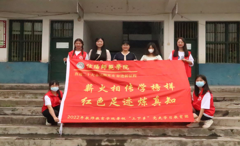 为全面落实党的教育方针,学习榜样精神,担当教书育人使命。7月4日,教师教育学院暑期三下乡小分队前往光山县砖桥镇环山小学开展以“薪火相传学榜样,红色足迹练真知”为主题的社会实践活动。我院三下乡小分队同任教毕业生盛京明、方玉叶、匡思成一行共同完成此次社会实践活动。
