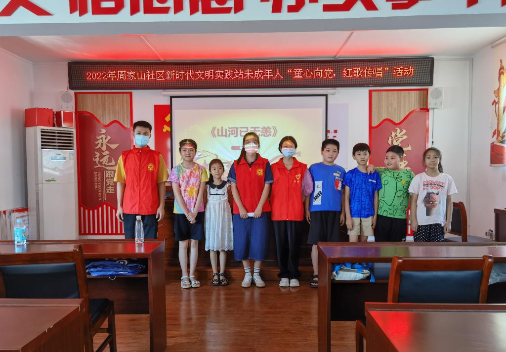 面对社区留守儿童,志愿者们针对社区的留守孩子的学习情况,为其开展辅导课程,对他们作业方面的为题进行耐心、细致的辅导。小组成员精心组织策划周家山社区“童心向党”活动,为社区儿童进行红色歌曲的音乐课教授,并为孩子们播放红色经典电影,帮助孩子从小树立爱国爱党的理想信念。同时开展画画、写毛笔字、歌唱、剪纸、舞蹈、诗歌朗诵等方面的兴趣班,培养孩子们的兴趣爱好,带他们感受到国家和社会给予的关心和爱护,引导鼓励孩子们热爱生活、好好学习,与孩子们交流沟通,陪伴他们共同成长,为广大留守儿童健康成长创造更好的环境。