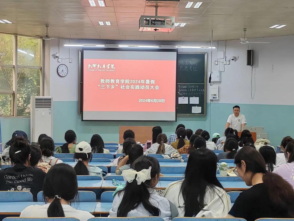 6月27日,教师教育学院于教九楼104教室召开2024年暑期“三下乡”社会实践动员大会,2022级小学教育专业全体学生参与。动员大会由辅导员姚雨承主持。