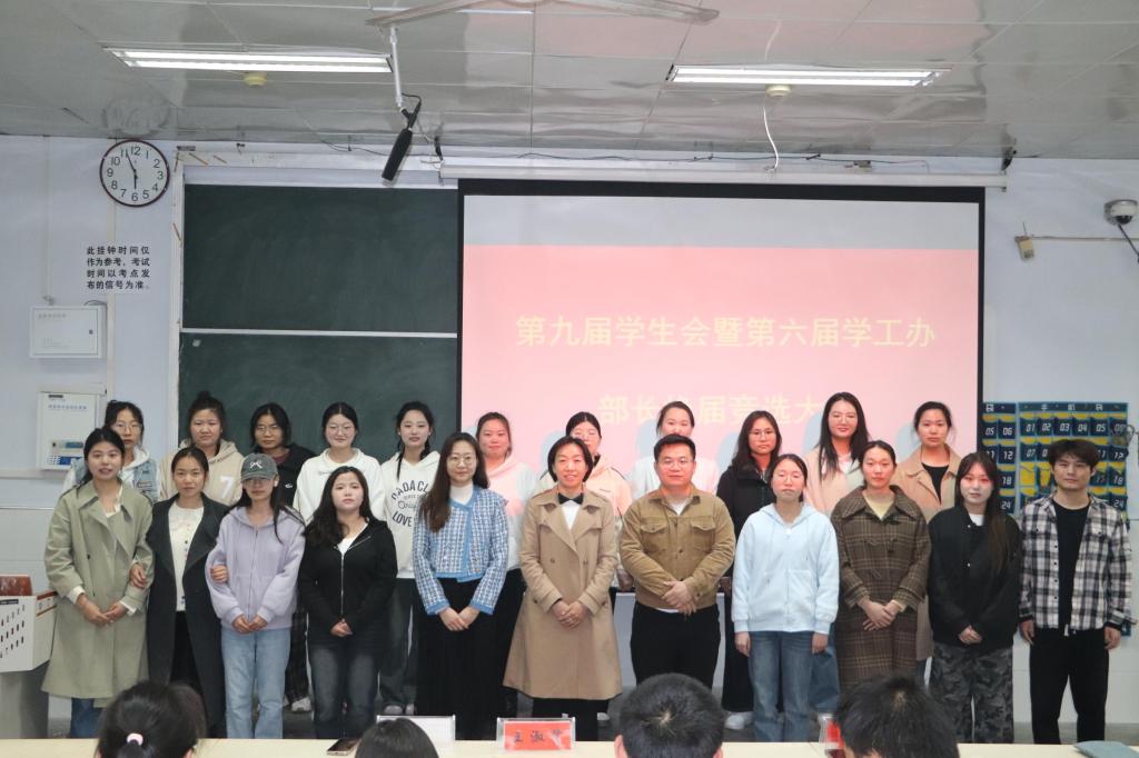 大会伊始,主持人简要介绍大会流程与目的,为活动拉开序幕。随后,竞选人依次上台发言,他们分享这一年的工作经验、对未来工作的规划与展望,展现出对学生工作的热忱以及积极进取的精神风貌。接着,张小丫与融媒体部长贺馨茹分别进行工作总结,张小丫回顾了过去一年活动组织、工作协调等方面的经历与成果,指出优点与不足;贺馨茹则聚焦新闻报道工作,展示学院在新媒体平台的建设成果,如公众号运营数据、校园活动报道影响力等,为后续宣传工作提供参考。随后,王淑贤进行总结发言,她对换届大会的顺利进行表示祝贺,对卸任学生干部的辛勤付出表示感谢,同时对新成员提出期望,希望新成员在新岗位上勇于担当、积极创新,为学院的学生工作注入蓬勃活力,引领同学们共同迈向更辉煌的未来。最后,学院对过去一年表现优异的学生会干部和积极参与学院活动的同学进行表彰,与会的领导老师上台与获奖同学一起合影留念,肯定他们为学院发展付出的努力与贡献,激励全体同学以他们为榜样,积极投身学院建设。