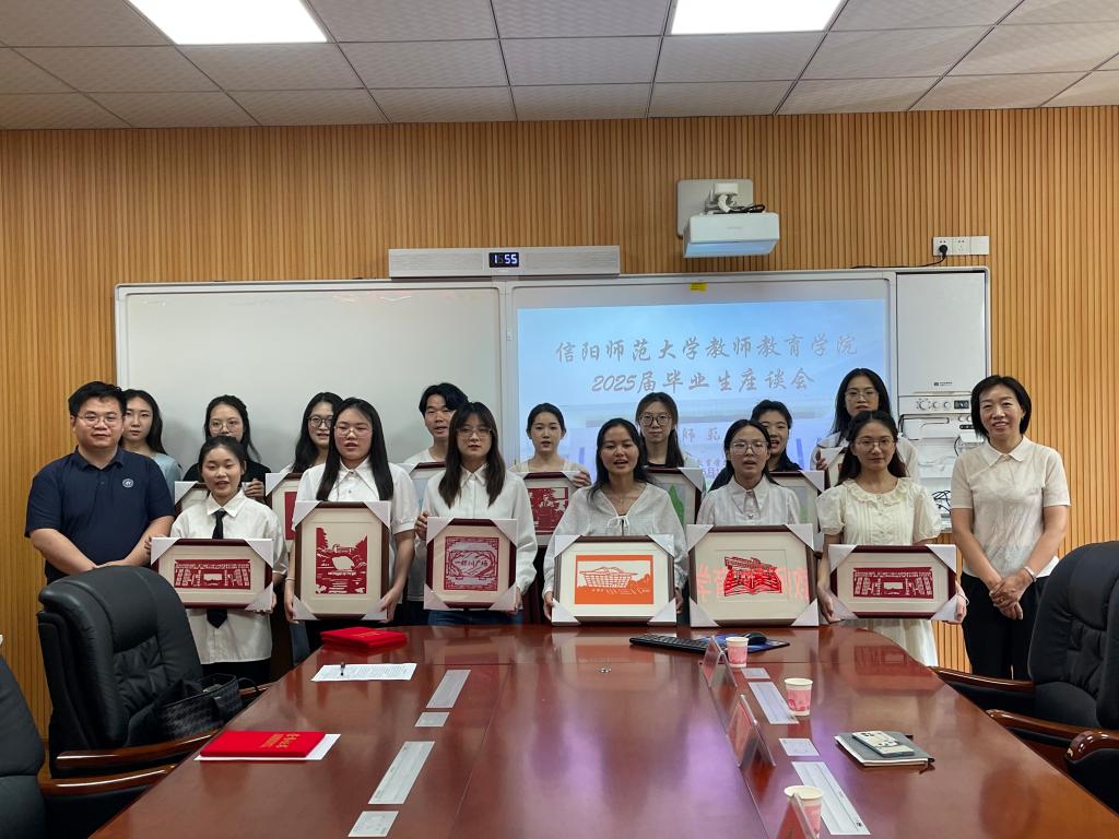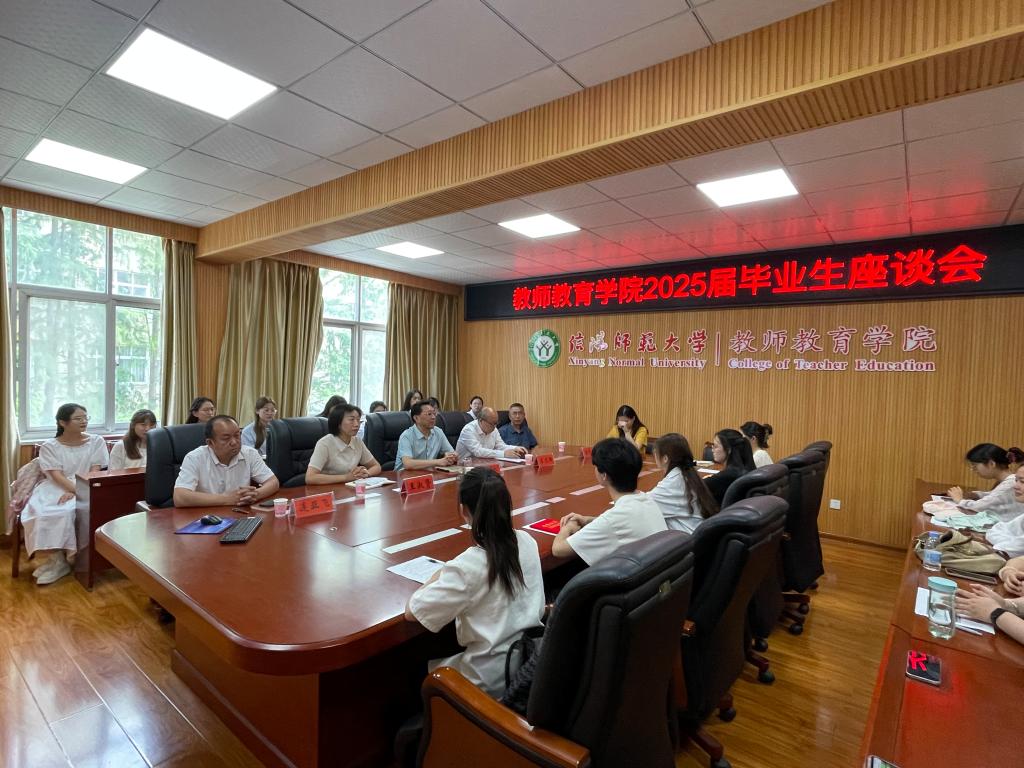 5月19日下午,教师教育学院在教七楼301会议室召开2025届毕业生座谈会。学院党委书记潘登,院长李文田,党委副书记王淑贤,副院长张申亚、连亚飞,辅导员李依、姚雨承和毕业生代表参与了此次座谈会。会议由王淑贤主持。