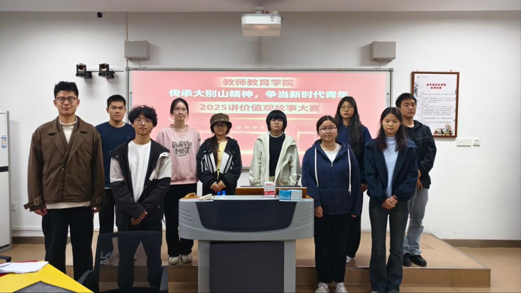 为深入学习贯彻习近平新时代中国特色社会主义思想,落实立德树人根本任务,传承红色基因,11月2日,教师教育学院于教七楼408教室举办“传承大别山精神,争当新时代青年”2025讲价值观故事大赛初赛。