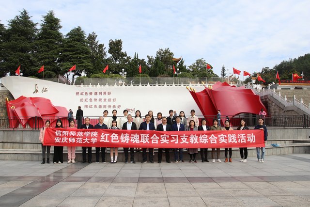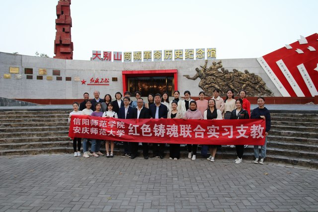 10月27日—29日,信阳师范学院、安庆师范大学联合开展了“红色铸魂”教育实践综合活动。来自信阳师范学院教师教育学院小学教育专业与安庆师范大学教师教育学院小学教育专业的26名师生参加本次活动。本次教育实践活动是在大别山革命老区高校联盟基本框架协议下,由信阳师范学院、安庆师范大学、黄冈师范学院共同发起的“红色园丁”协同培养项目的一个重要组成部分。本次活动历时三天,行程千余公里,走进大别山腹地。先后在河南新县列宁小学与安徽金寨列宁小学举行了联合教育实习启动仪式暨红色铸魂联合实习支教综合实践活动。