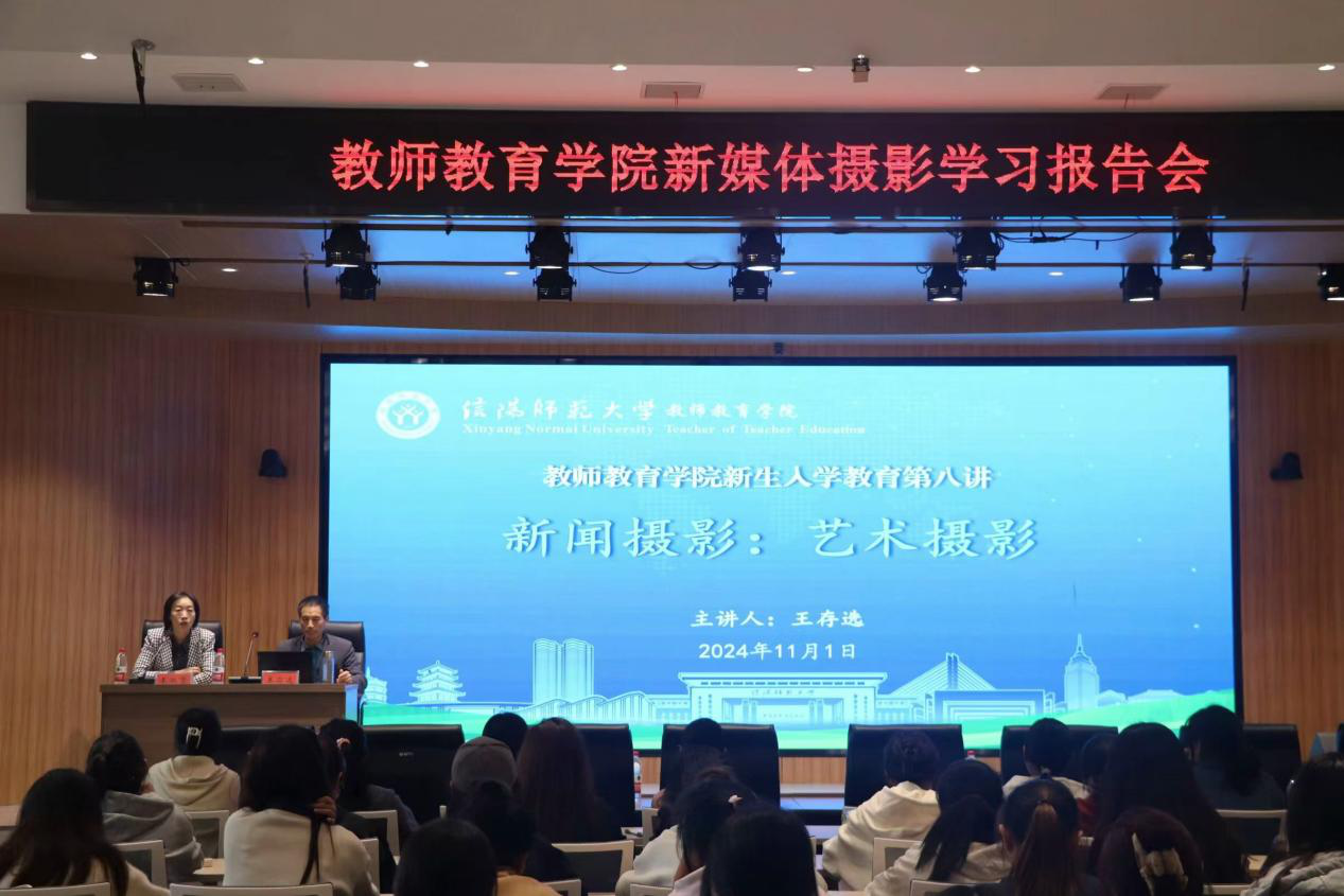 为提升我院新媒体工作人员及摄影爱好者的摄影技能和艺术素养,11月1日,教师教育学院于谭山书院博雅讲堂特邀请信阳师范大学关工委“金色银龄”宣讲团成员王存选老师为教师教育学院学生作题为“新闻摄影:艺术摄影”的摄影学习报告会。教师教育学院党委副书记王淑贤,辅导员姚雨承以及教师教育学院2024级摄影爱好者参加报告会。报告会由王淑贤主持。