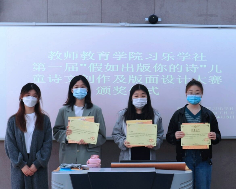 4月3日,教师教育学院“假如出版你的诗”儿童诗文创作及版面设计大赛颁奖仪式在教七楼201教室顺利举办。此次比赛采取线上征集作品的形式,全校共计500余人参与。我院教师张祥耀、谭阿明、王召召担任此次大赛评委。